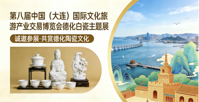 2026年3月27日-30日,第八届中国(大连)国际文化旅游产业交易博览会将在大连世界博览广场举办,德化县设白瓷主题文旅展区参展。本次参展以“文体旅融合兴百业,高质量发展促消费”为主题,设文旅资源推介、白瓷文创精品展两大区域,同步参与“中艺杯”工艺美术大赛、文旅交流座谈会等活动,旨在展示德化白瓷与文旅资源,对接东北及日、韩客源市场,推动产业合作与品牌提升。