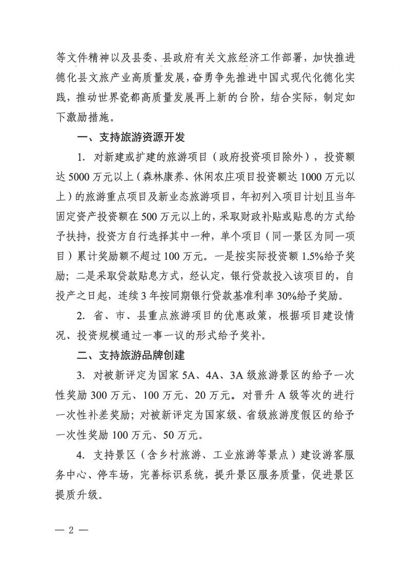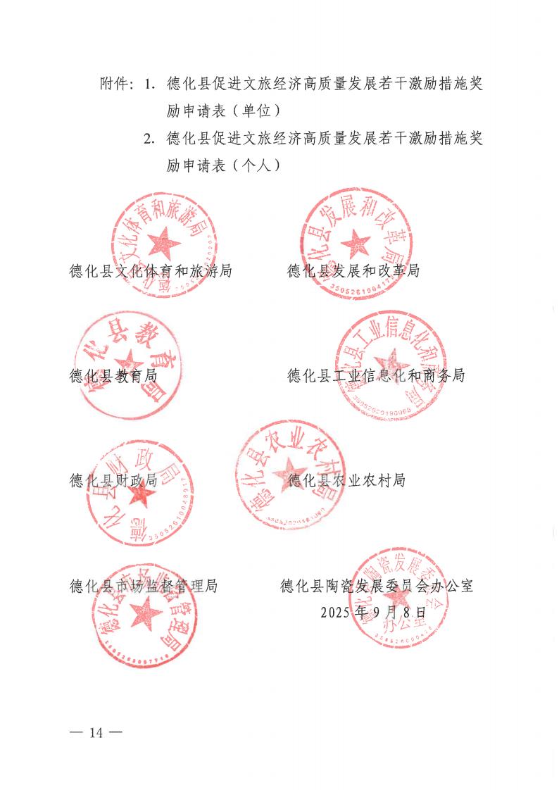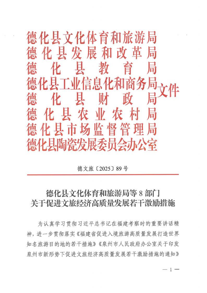 德化县文化体育和旅游局等8部门关于促进文旅经济高质量发展若干激励措施