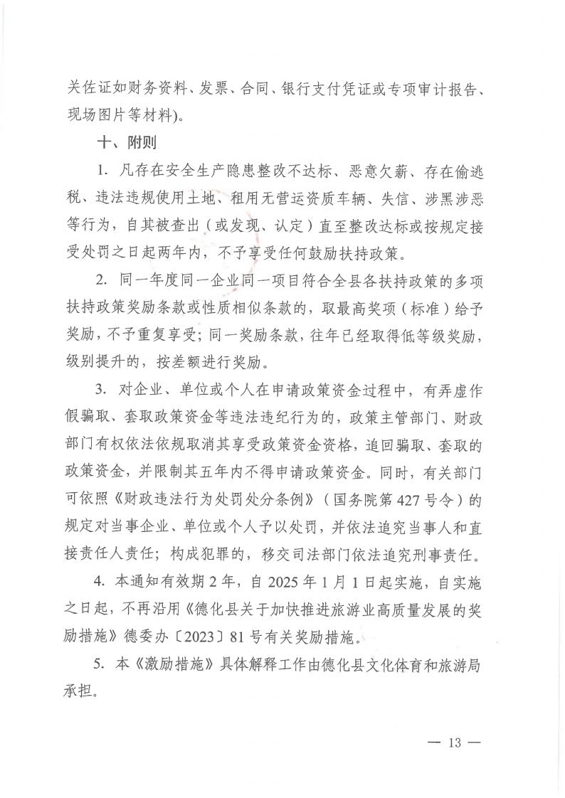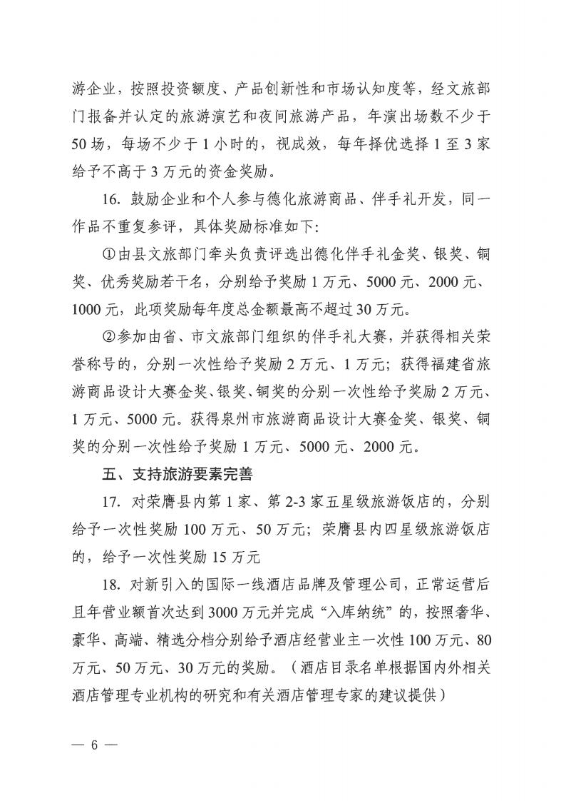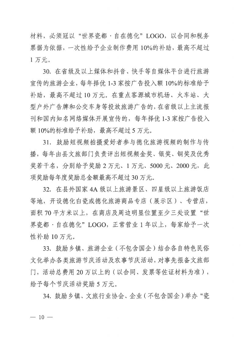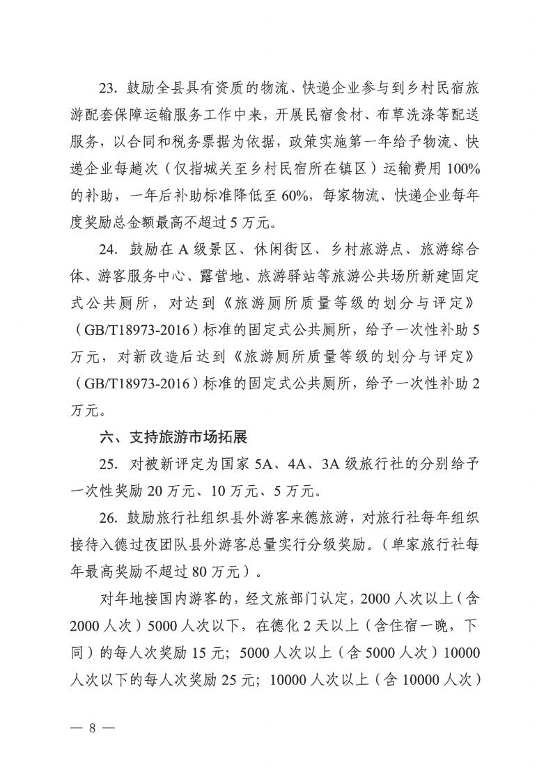 德化县文化体育和旅游局等8部门关于促进文旅经济高质量发展若干激励措施